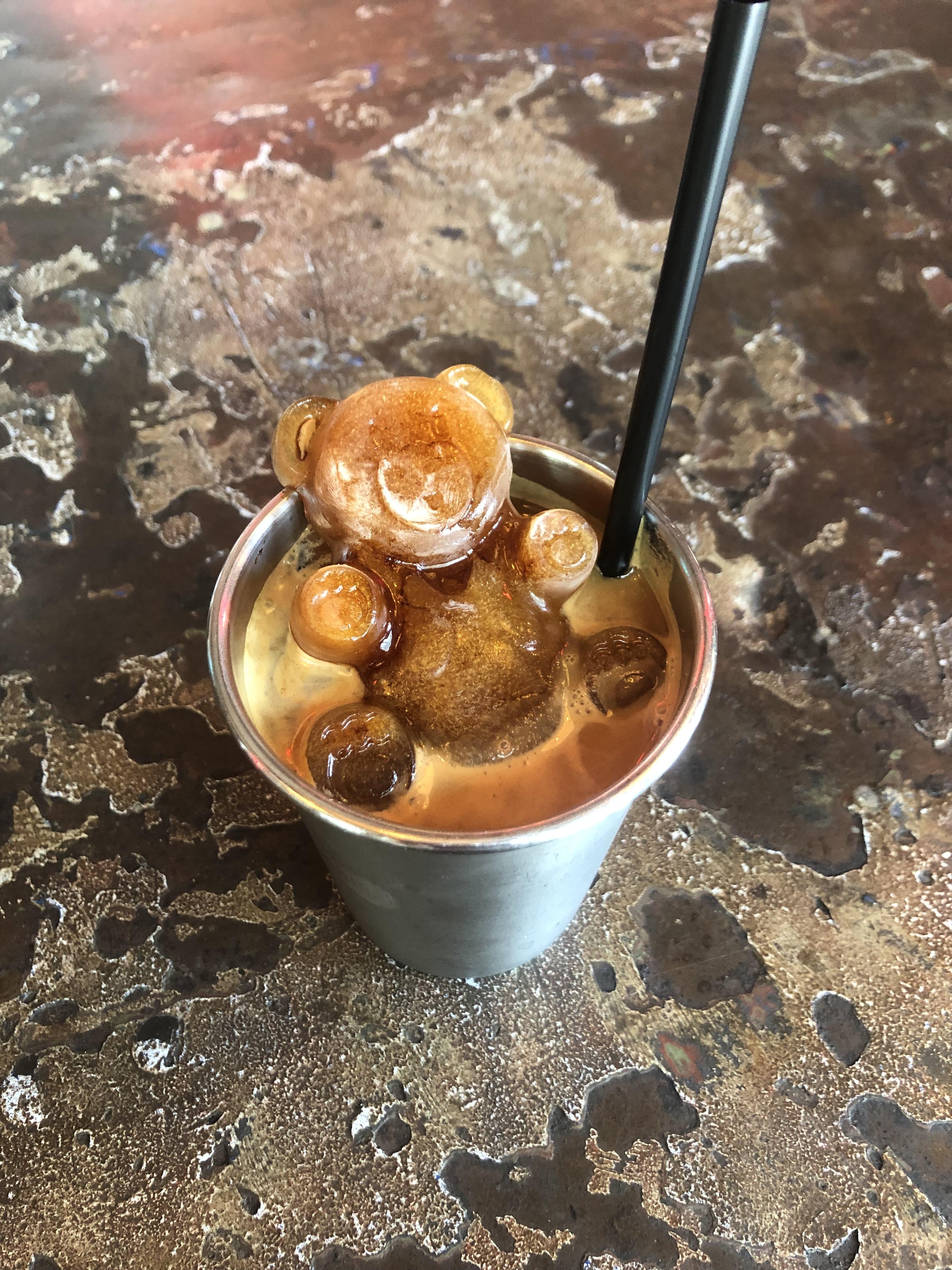 쿠데타아이스아메리카노곰돌이얼음이 얹어져있다