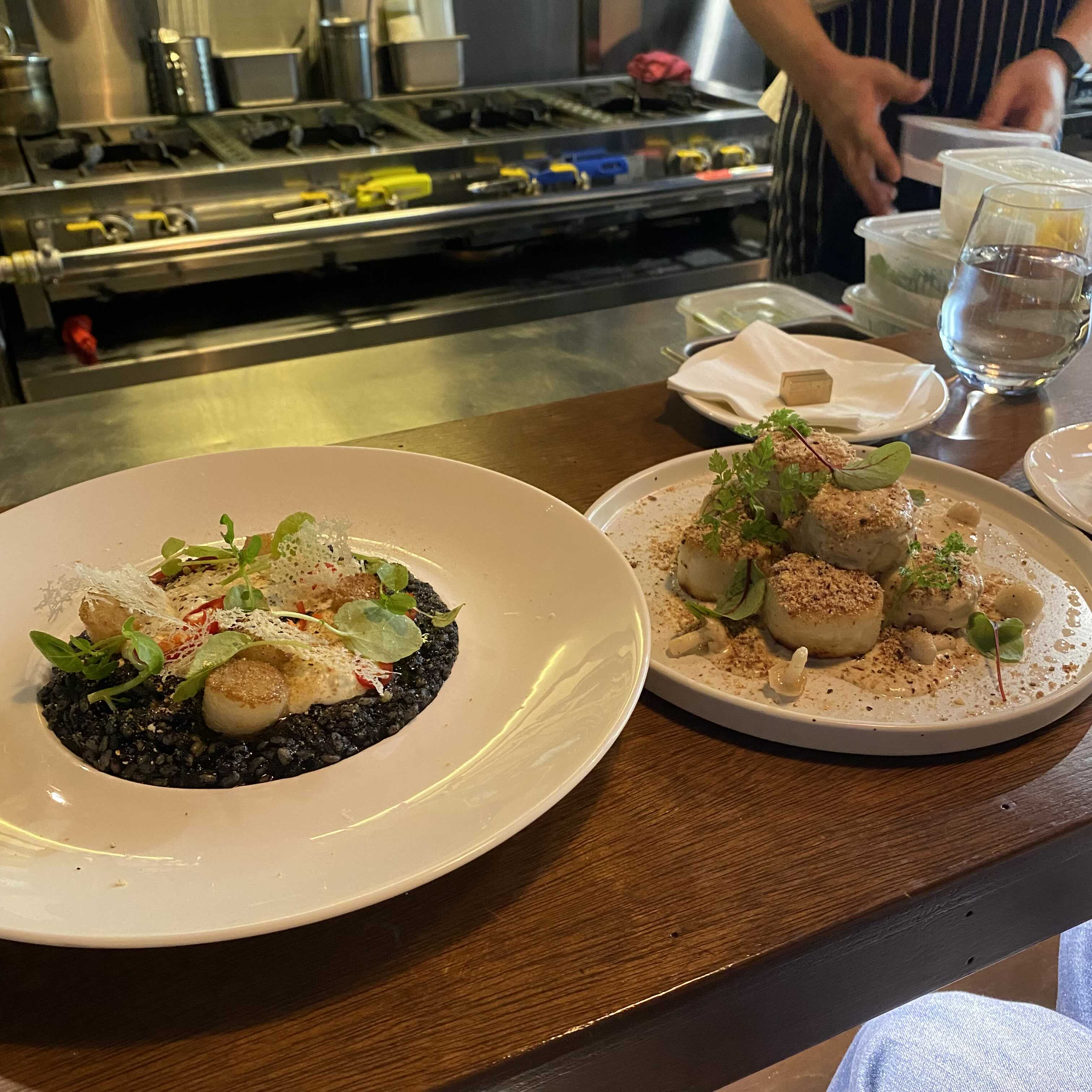 파스타맛집 피오니파스타바왼쪽 먹물리조또오른쪽 뇨끼-뇨끼 맛있어서 재방문 한건데 리조또는 음..: 예쁜 상태로 놓고먹으면 맛없는듯.. 다 섞어야 맛있을듯.. 먹물리조또 자체에는 간이 안되있는것같아서.. 치즈랑관자랑 같이먹어야되는데 난 이게 귀찮았음