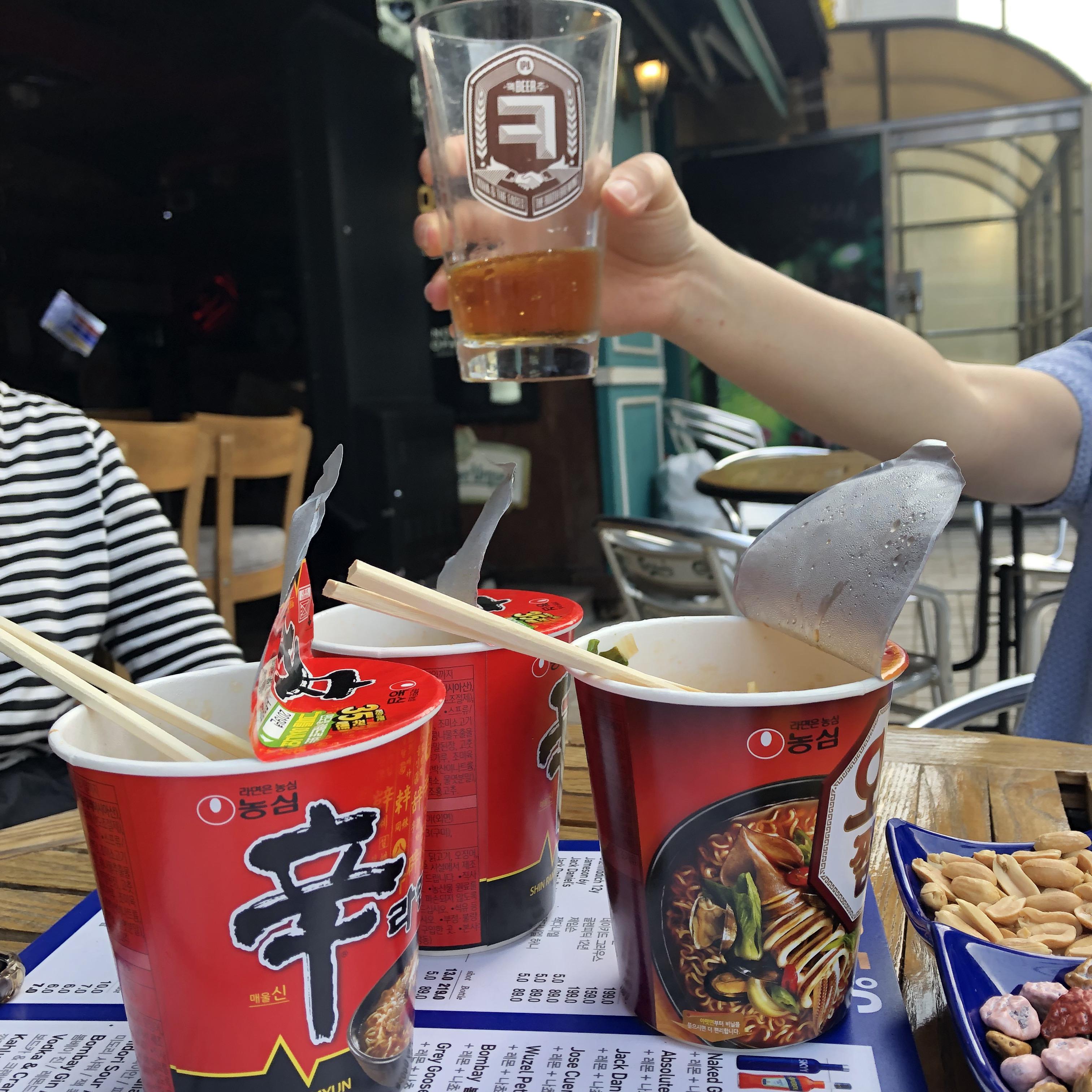 대낮에 맥주집에서 라면에 소맥
