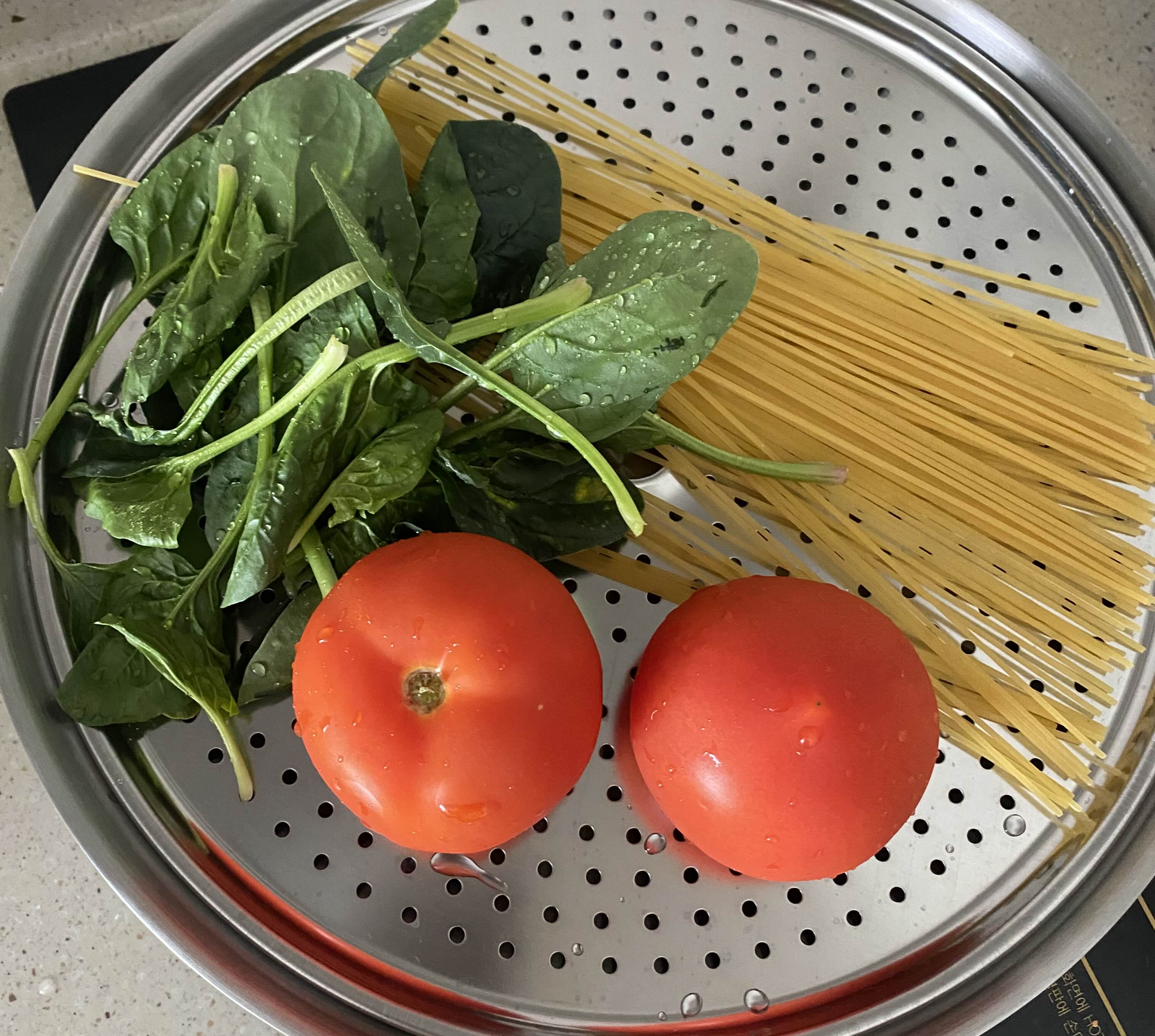 시금치토마토 파스타는 처음 만들어봤으나